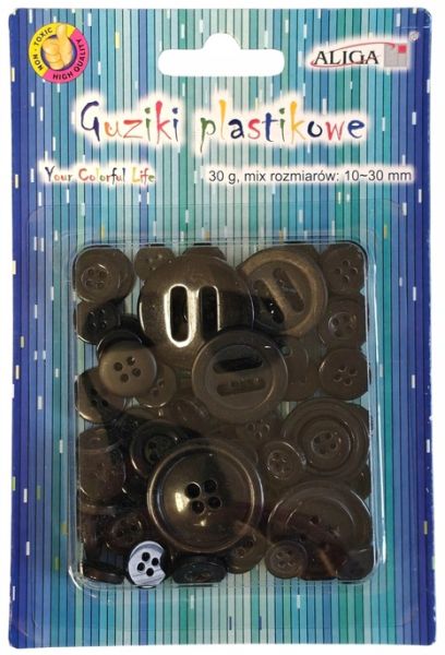 Guziki plastikowe, mix rozmiarów, kol. Czarny |