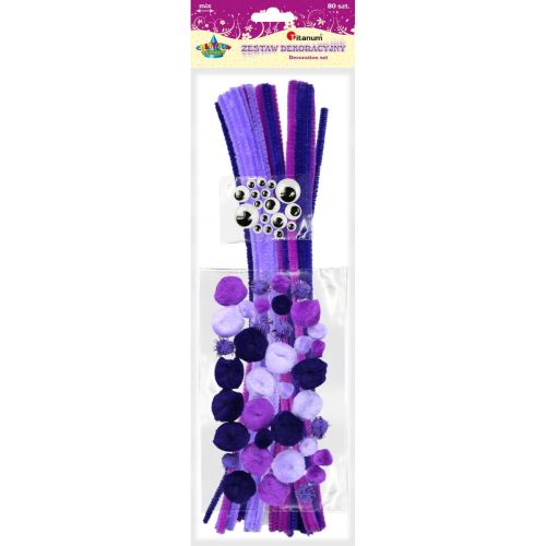 Titanum » Artykuły dekoracyjne całoroczne » Pompony » Zestaw: druciki, pompony, oczka 80szt. fioletowy