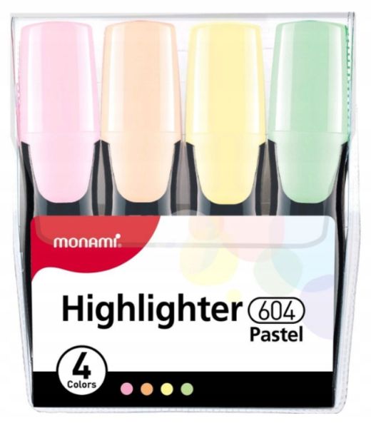 Kw-Trade » Monami » Zakreślacze » Zakreślacz owalny 1-6 mm 604 MONAMI - 4 kolory pastelowe - 1 szt. op. (0%)