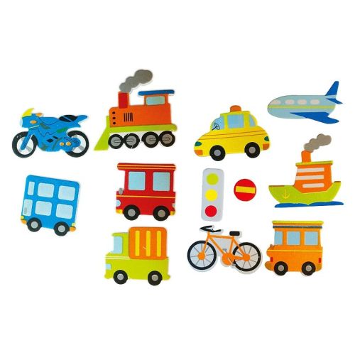 Titanum » Artykuły dekoracyjne całoroczne » Filce i Pianki: naklejki i dekoracje » Naklejki piankowe pojazdy 12 wzorów 39szt.