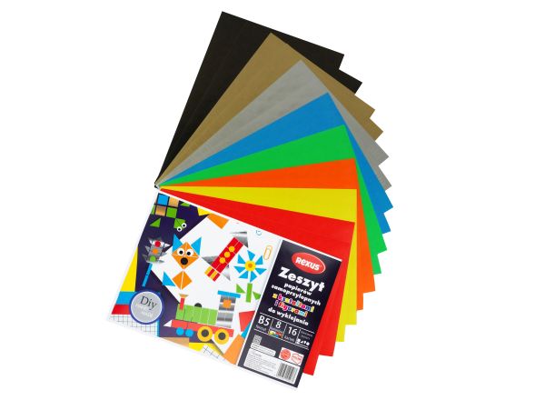 ZESZYT PAPIERÓW KOLOROWYCH SAMOPRZYLEPNYCH B5/16k. Kształtowa