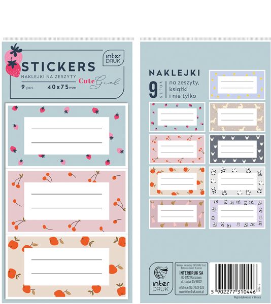 Interdruk » Artykuły szkolne i dziecięcie » Naklejki » Naklejki na zeszyty 9szt. Cute Girl [opakowanie=12szt]