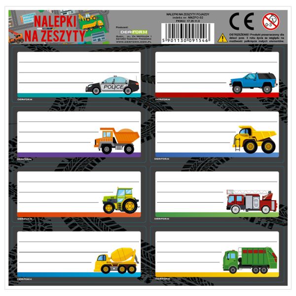 Derform » Derform Basic » Nalepki » NALEPKI NA ZESZYTY POJAZDY [opakowanie=25szt]