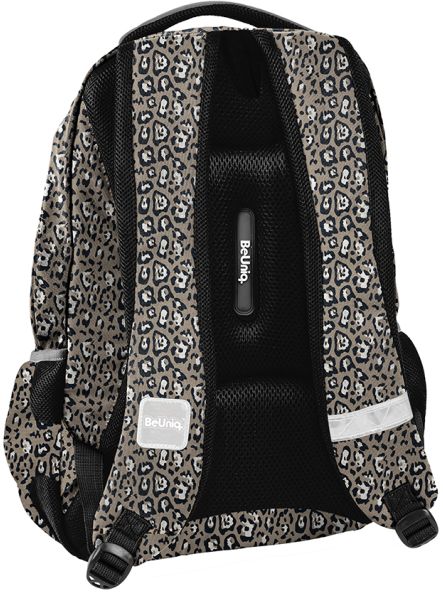Plecak młodzieżowy, szkolny. Trzy pojemne komory, kieszeń przednia z organizerem, 2 boczne kieszenie z siatki+materiał. Wzmocnione profilowane plecy evafoam, miękkie wygodne szelki. Wzmocniony i usztywniony spód. Wygodny uchwyt do przenoszenia i uszko do powieszenia. W komorze głównej przegroda (na laptop), w drugiej komorze organizer z kieszenią na zamek, uchwyt na klucze. Elementy odblaskowe dla większego bezpieczeństwa. Wymiary: 40X30X18