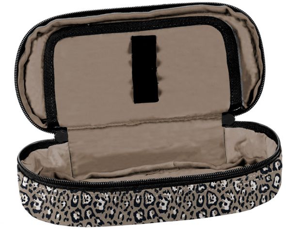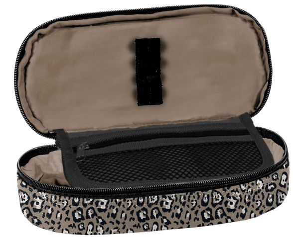 Piórnik - przybornik na dodatkowe akcesoria szkolne. Wewnątrz klapka z gumkami do ołowków i długopisów z jednej strony oraz z kieszonką na zamek z siatki z drugiej. Wymiary: 23x10x5