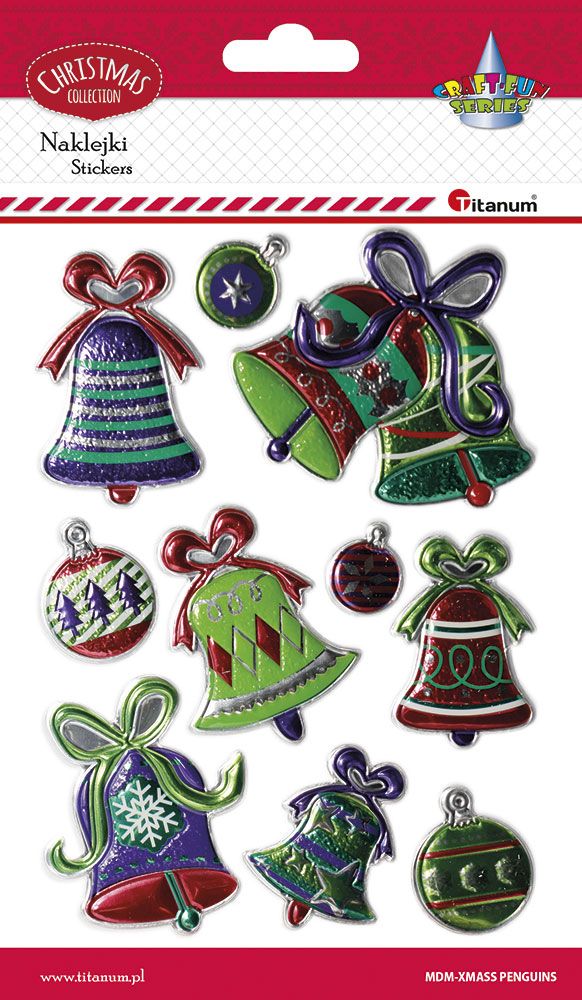Titanum » Boże Narodzenie » Naklejki Bożonarodzeniowe » Naklejki wypukłe bożonarodzeniowe dzwonki i bombki metaliczne mix 10szt.