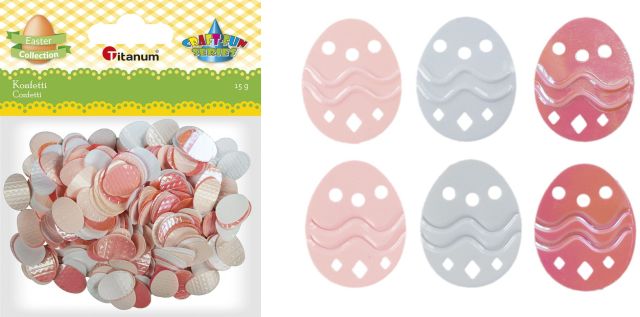 Titanum » Artykuły dekoracyjne całoroczne » Wielkanoc » Konfetti Pisanki 12x17mm białe, bladoróżowe, łososiowe, fluo różowe 15g TITWLK26