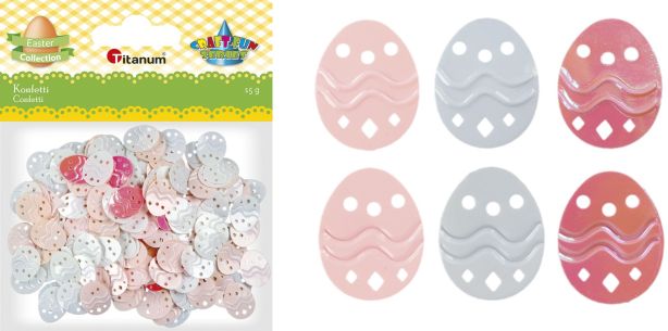 Titanum » Artykuły dekoracyjne całoroczne » Wielkanoc » Konfetti Pisanki 11x14mm ażurowe białe, beżowe, bladoróżowe, różowe 15g TITWLK26