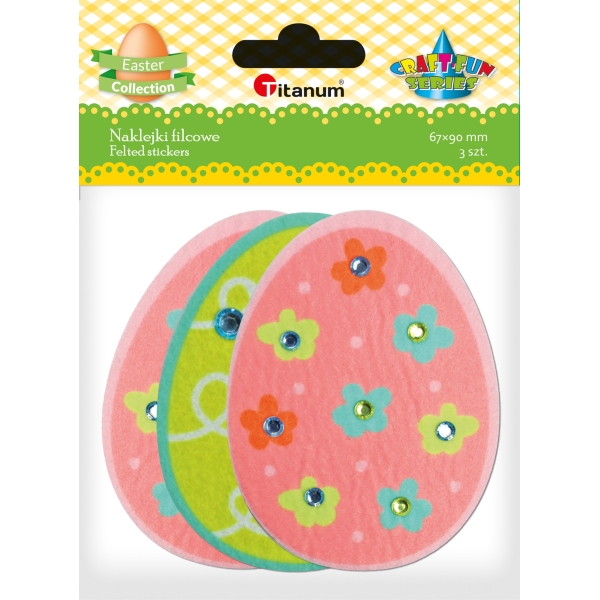 Titanum » Artykuły dekoracyjne całoroczne » Wielkanoc » Naklejki filcowe pisanki 68x90mm z kryształkami 2xróżowy, 1xlimonkowy mix 3szt. TITWLK26