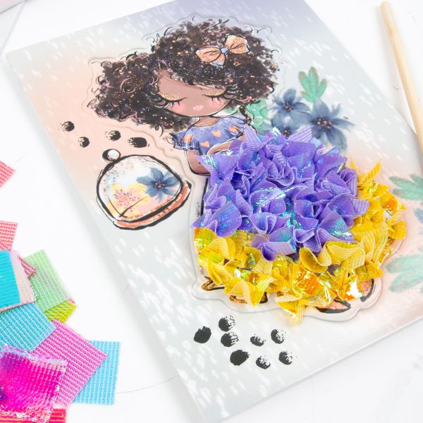 Świat mody stoi otworem przed małymi projektantkami dzięki kreatywnej zabawie Stylistka od Kidea. W opakowaniu znajdują się cztery szablony z księżniczkami, drewniany patyczek oraz metaliczne kawałki materiału w różnych kolorach. Aby ubrać księżniczki w błyszczące kreacje wystarczy wcisnąć kawałki materiału w miejsca oznaczone krzyżykiem i gotowe! Zestawiając ze sobą różne kolory materiałów można tworzyć wielobarwne kreacje lub postawić na bardziej stonowane, jednolite stylizacje. Kiedy stworzony strój już sie znudzi wystarczy wyjąć skrawki materiału z otworów i zacząć zabawę na nowo! Wystylizowane księżniczki można wyjąć z szablonu i bawić się nimi tworząc niesamowite historie.