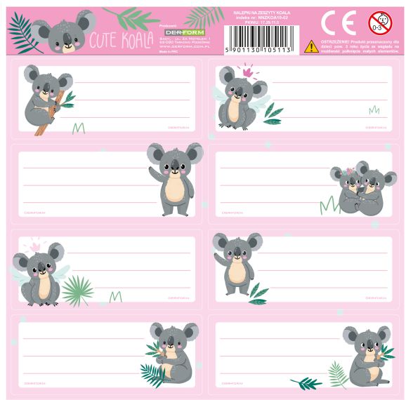Derform » Derform Basic » Nalepki » NALEPKI NA ZESZYTY KOALA 10 [opakowanie=25szt]