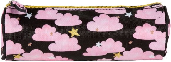 Jednokomorowa saszetka typu tuba, zapinana na zamek zakończony ozdobną zawieszką.