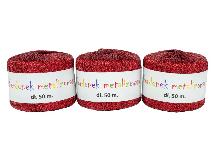 Aliga » Pasmanteria » Kordonek KOB-04 metalizowany czerwony 2mm X50m op.= 3szt.