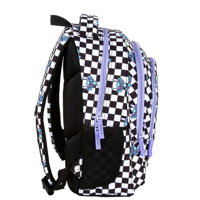 Nr: BA069DF Kod kreskowy: 5906601701511 Nr kat. PLB7X39 Plecak z nowoczesnym podejściem do klasyki – biało-czarna szachownica, która zyskuje świeży, młodzieżowy twist dzięki fioletowym zamkom i suwakom. W subtelny sposób, na tle charakterystycznych kwadratów, pojawia się wzór małego, kosmicznego stworka, który przywodzi na myśl urocze stworki z odległych planet. Ten wyjątkowy detal dodaje plecakowi charakteru i lekko tajemniczego uroku. Idealny dla tych, którzy szukają prostoty z nutą oryginalności i odrobiny fantazji.