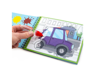 Magiczna kolorowanka wodna to niezastąpiony pomysł na nudę. Jest niebrudząca, a przy tym bardzo łatwa i szybka w użyciu. Wystarczy przed zabawą napełnić pisak wodą, aby zacząć kolorować. Odsłoni się wówczas piękny obrazek. Po kilku minutach kolory znikają, a całość jest gotowa do ponownego użycia! Zestaw zawiera aż 6 różnych arkuszy o tematyce pojazdów oraz pisak do kolorowania.