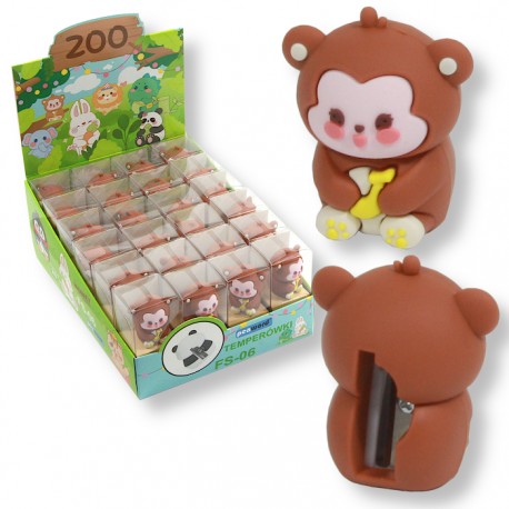 Cechy produktu: ✔ Model: FS-06 – w formie sympatycznej małpki o dziecięcym wyglądzie. ✔ Materiał: miękka guma + wysokiej jakości ostrze metalowe. ✔ Funkcja: ostrzenie ołówków i kredek. ✔ Rozmiar: poręczny, bezpieczny, idealny dla dziecięcych rączek. ✔ Design: zabawny i kolorowy, przyciągający uwagę najmłodszych. ✔ Display: 24 sztuki – gotowe do ekspozycji w sprzedaży detalicznej.