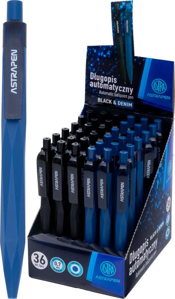 Astra » AstraPen - art. piśmiennicze » Długopisy automatyczne, żelowe i wkłady » Długopis automatyczny 0.7 mm ASTRAPEN Black x Denim - display 36 szt.