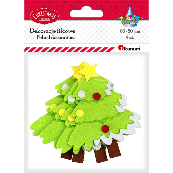 Titanum » Boże Narodzenie » Nowości Boże Narodzenie 2025 » Dekoracje filcowe 3D choinki 60x75mm 4szt.