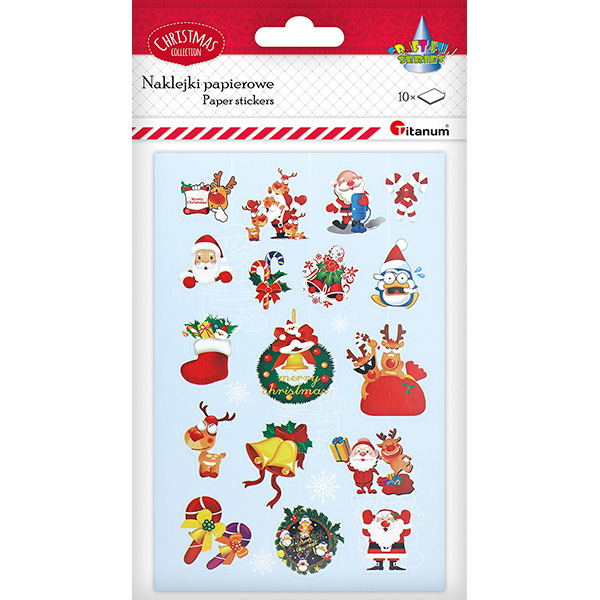 Titanum » Boże Narodzenie » Naklejki Bożonarodzeniowe » Naklejki papierowe 10 plansz wianki, stroiki, Mikołaje, renifery 17 wzorów - 170szt.