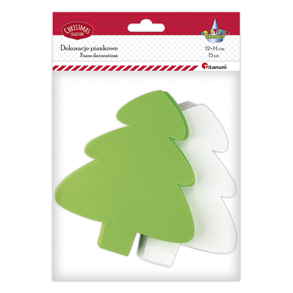 Titanum » Boże Narodzenie » Nowości Boże Narodzenie 2025 » Piankowe choinki 120x140mm zielone, białe 15szt.
