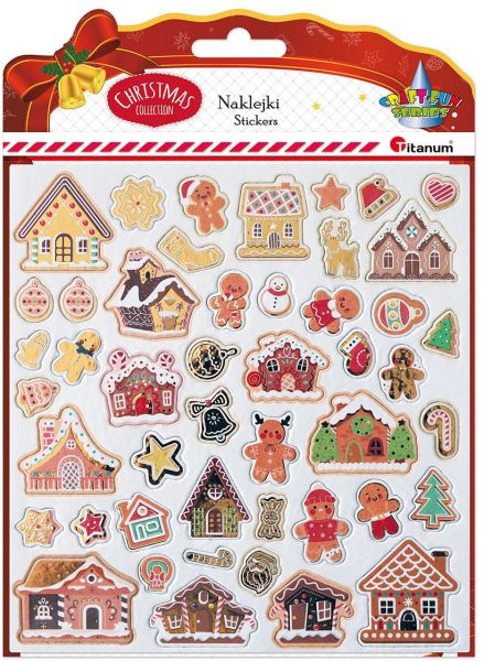 Titanum » Boże Narodzenie » Naklejki Bożonarodzeniowe » Naklejki 3D papier na filcu pierniki mix 47szt.