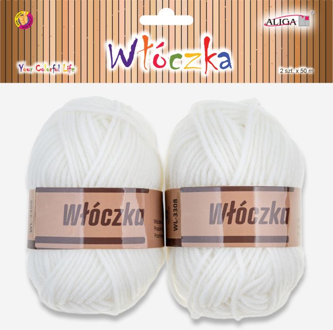 Aliga » Pasmanteria » Włóczka WL-3308 biała, dł. 50m, op. 2szt.