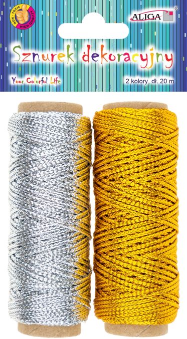 Aliga » Artykuły Dekoracyjne Całoroczne » Sznurki » Sznurek dekoracyjny SZ-2936 metalizowany, rozm. 1, 5mm x 20m, op. zaw. 2 kolory