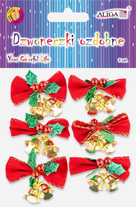 Aliga » Boże Narodzenie » Dzwoneczki ozdobne DZW-2967 z kokardką, rozm. 2, 5cm x 4, 5cm, op. 6szt.