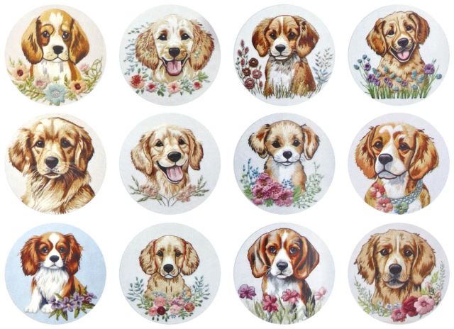 Titanum » Artykuły dekoracyjne całoroczne » Naklejki Dekoracyjne » Naklejki papierowe na taśmie 8 wzorów psy O25mm 500szt. szerokość taśmy 27mm