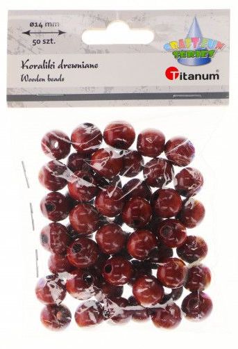 Titanum » Artykuły dekoracyjne całoroczne » Koraliki, Guziki » Koraliki drewniane okrągłe O14mm otwór O3mm lakierowane brązowe drewno 50szt.