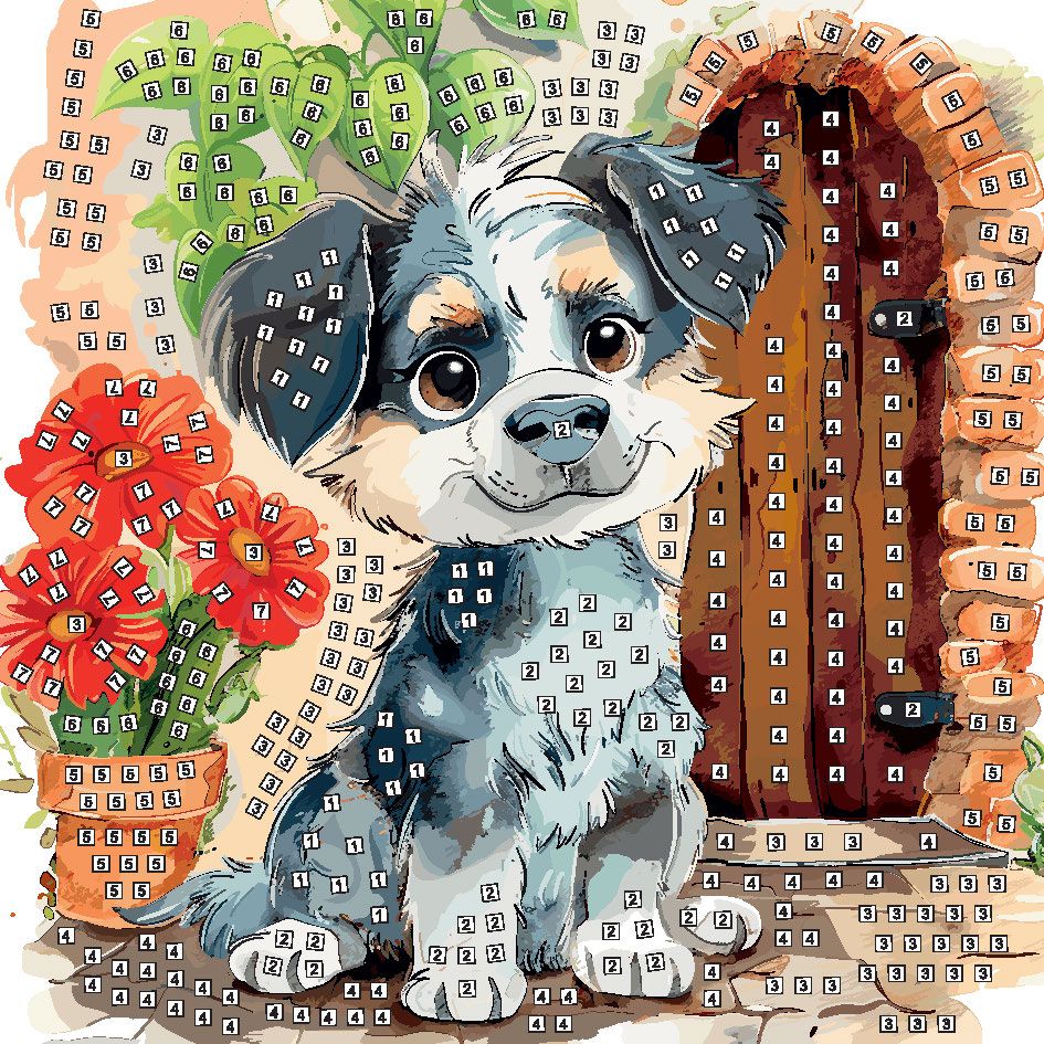 Mozaika piankowa SIEDZĄCY PIES wymiary planszy do wyklejenia: 25x25 cm, stojak na obrazek