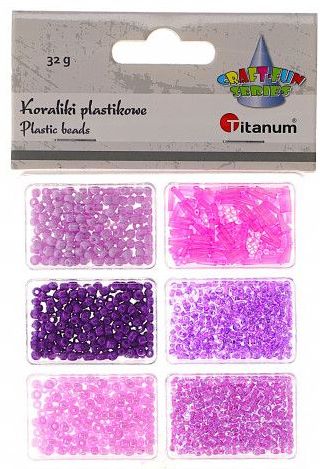 Titanum » Artykuły dekoracyjne całoroczne » Koraliki, Guziki » Koraliki plastikowe mix 6 rozmiarów 32g tonacja fioletowa