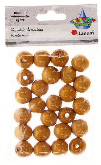 Titanum » Artykuły dekoracyjne całoroczne » Koraliki, Guziki » Koraliki drewniane okrągłe O20mm otwór O3mm lakierowane jasnobrązowe drewno 25szt.