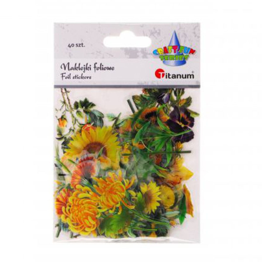 Titanum » Artykuły dekoracyjne całoroczne » Naklejki Dekoracyjne » Naklejki foliowe kwiaty tonacja żółta mix wzorów i rozmiarów 40szt.