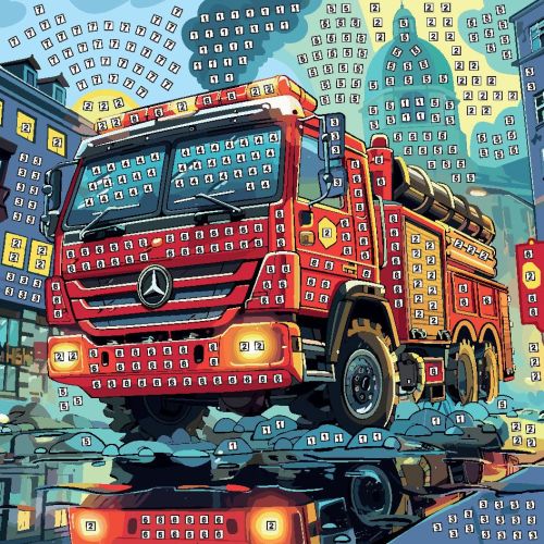 Mozaika piankowa AUTO STRAŻY POŻARNEJ wymiary planszy do wyklejenia: 25x25 cm, stojak na obrazek