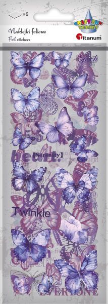 Titanum » Artykuły dekoracyjne całoroczne » Naklejki Dekoracyjne » Naklejki foliowe 6 plansz motyle fioletowe, różowe, białe