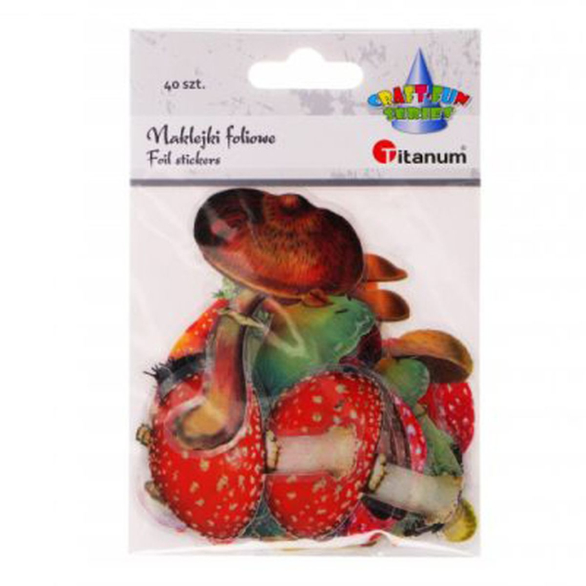 Titanum » Artykuły dekoracyjne całoroczne » Naklejki Dekoracyjne » Naklejki foliowe grzyby tonacja żółto-pomarańczowa mix wzorów i rozmiarów 40szt.