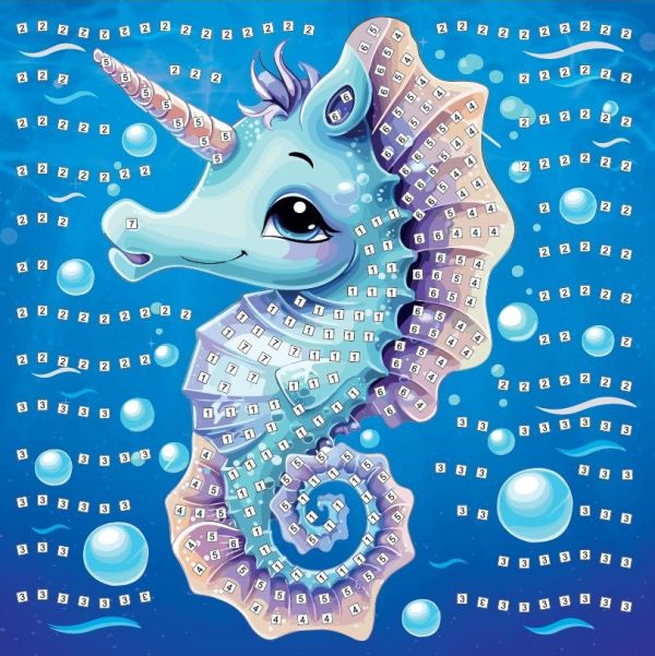 Mozaika piankowa KONIK MORSKI JEDNOROŻEC wymiary planszy do wyklejenia: 25x25 cm, stojak na obrazek