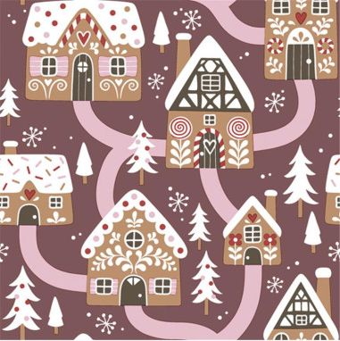 Pol-Mak » Serwetki » Serwetki Gwiazdka » Serwetki POL-MAK GWIAZDKA Daisy Lunch 33cm 20szt. Gingerbread Houses on Claret SD_GW_025002 [opakowanie=24szt]