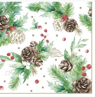 Pol-Mak » Serwetki » Serwetki Gwiazdka » Serwetki POL-MAK GWIAZDKA Maki Lunch 33cm 20szt. Cones x Hollyberry on White SL_GW_027402 [opakowanie=12szt]