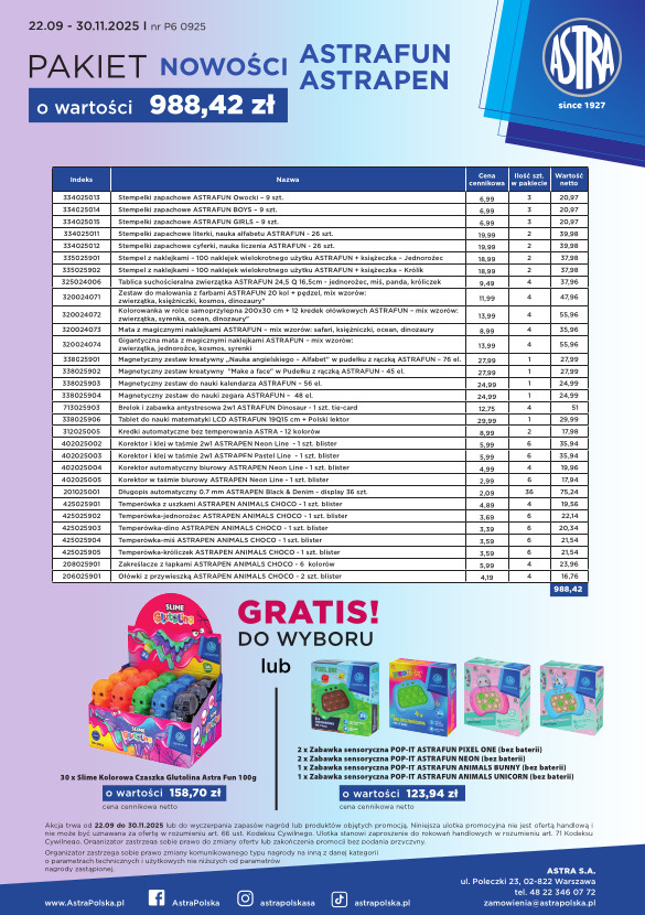Pakiet P6 0925 ASTRA Nowości AstraFun AstraPen o wartości 988, 42zł + GRATIS: towar