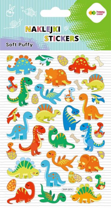 Naklejki 3D SOFT PUFFY - Dino Fun, 110X205 mm, Happy Color | DOSTĘPNE NA POCZĄTKU LISTOPADA [opakowanie=5szt]