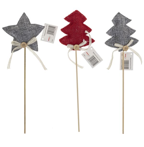 Dekoracja na piku wzór: gwiazdka i choinka  rozmiar: 10 x 2 x 27  cm kolor: szary, czerwony