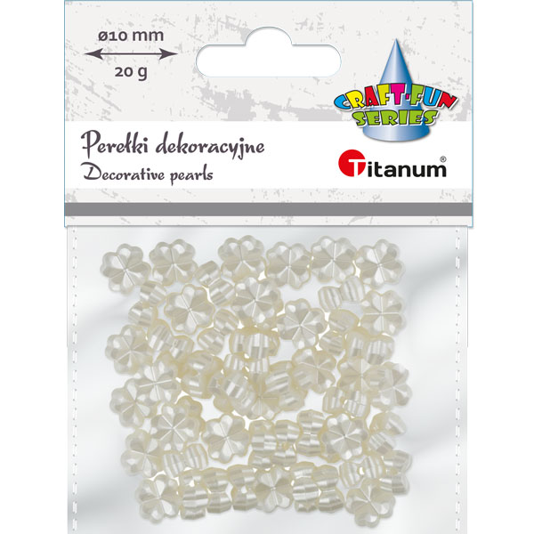 Titanum » Artykuły dekoracyjne całoroczne » Koraliki, Guziki » Koraliki perełki plastikowe czterolistna koniczyna O10mm dziurka O1mm białe 20g