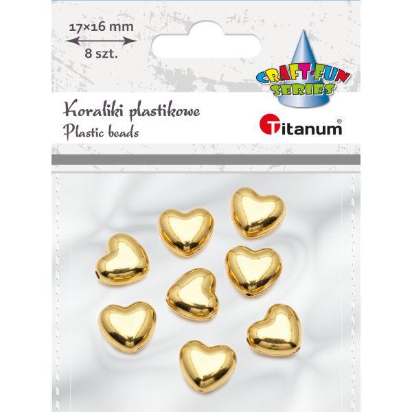 Titanum » Artykuły dekoracyjne całoroczne » Koraliki, Guziki » Koraliki plastikowe lustrzane serca wypukłe 17x16mm dziurka O2mm złote 8szt.