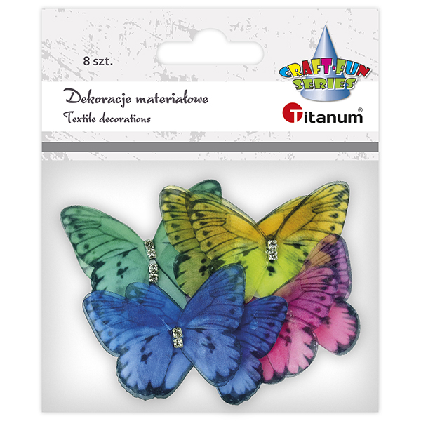 Titanum » Nowości Titanum » Dekoracje materiałowe motyle 48x36mm z 2 cyrkoniami mix kolorów 8szt.