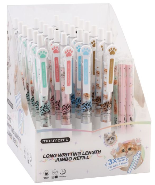 Gdd » M&G » Długopisy, Pióra, Wkłady » Długopis żelowy automatyczny, Cats, 0, 5mm, czarny, display 24szt + wkłady 6 etui, MG