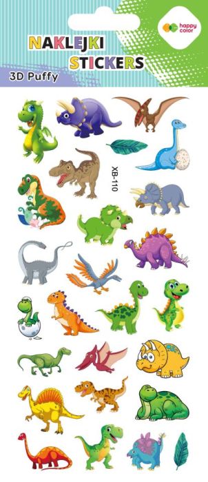 Gdd » Happy Color » Tatuaże, Naklejki, Breloki » Naklejki 3D PUFFY-Funny Dino, 9.5 cm x 22 cm, Happy Color [opakowanie=5szt]