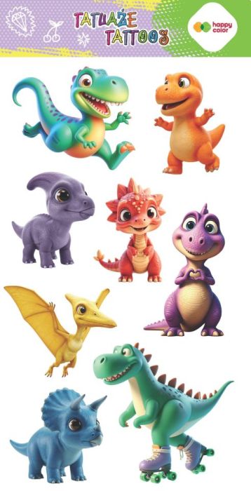 Gdd » Nowości » Tatuaże zmywalne DINO, rozm. 100x200 mm, Happy Color [opakowanie=10szt]