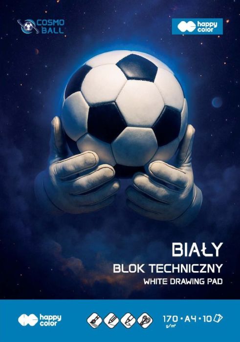 Gdd » Nowości » Blok techniczny biały Cosmo Ball, 170 g/m2, A4, 10 ark., Happy Color [opakowanie=20szt]